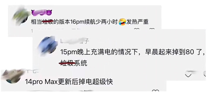 但是准备更新最新系统的听好了,这个版本打死都不要更,有些机型续航简直就是灾难。首先是iPhone15不要更新。这个版本创下了有史以来最低成绩,而16就更抽象了,比上个版本少了15分钟,直接比18.3少了2个小时。网上全是骂声一片。